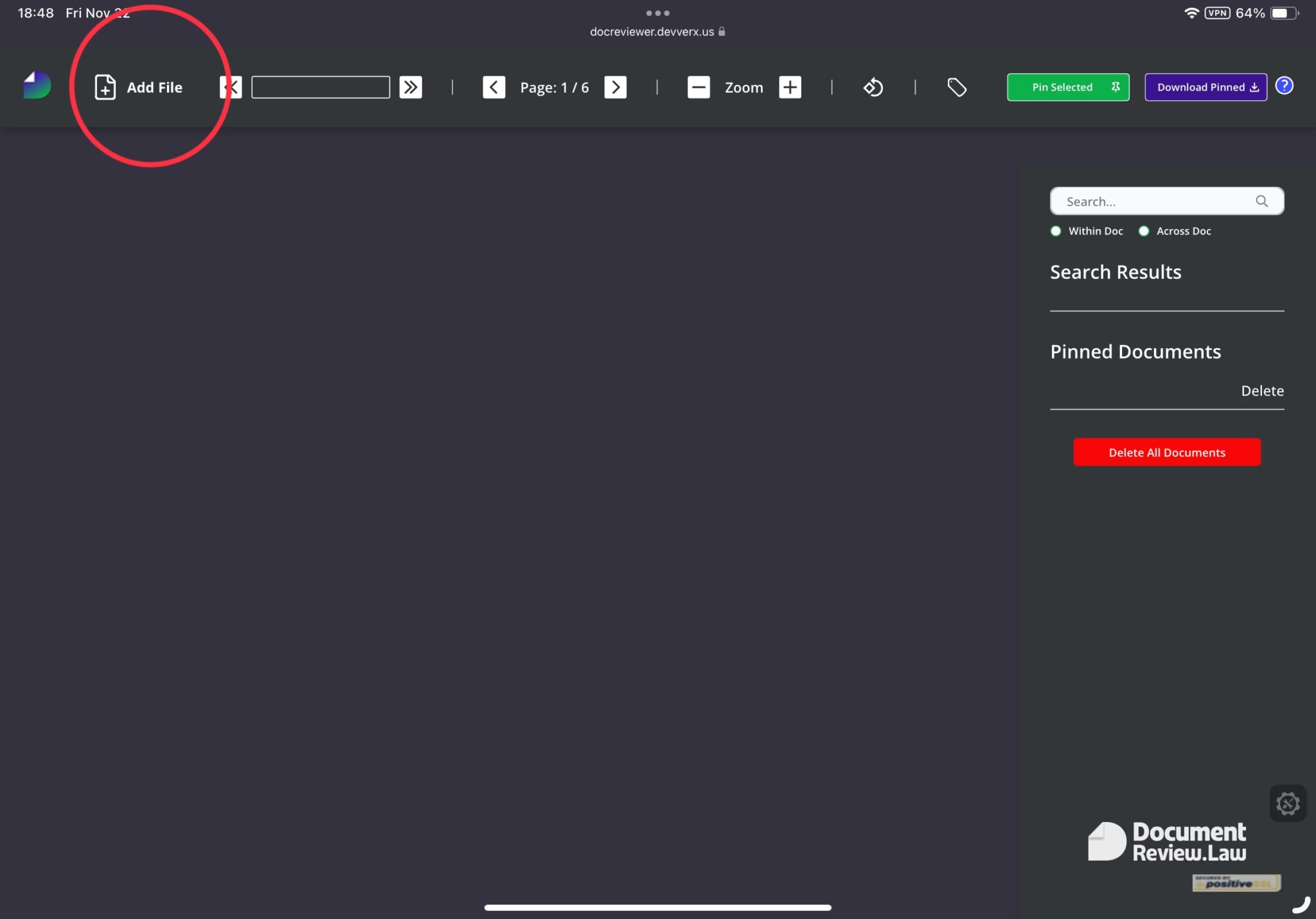 Add documents to the reviewer by clicking add file and selecting files from your computer. The reviewer will accept files with the following extensions: .pdf, .doc(x), .xls(x), .txt, .gif, .jpeg, .png., .tiff. If you select an entire folder, the reviewer will exclude any documents in incompatible file formats. To access cloud documents, the cloud service must be integrated into your computer’s file system. Select cloud documents just like documents stored on your computer. We recommend that if you have more than 500 documents to review at one time, consider conducting the review in several smaller batches.